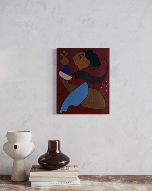Original canvas paintings and ceramics exploring human connection, identity, and cultural memory.