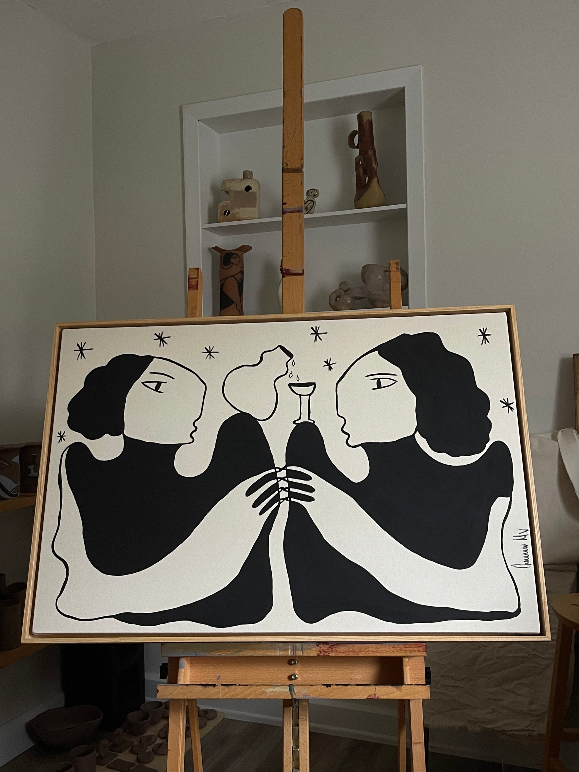 Painting size including floating frame 25X37inch.Acrylic on canvas. Floating frame included. Please email hello@desireemartinez.ca for any other questions.